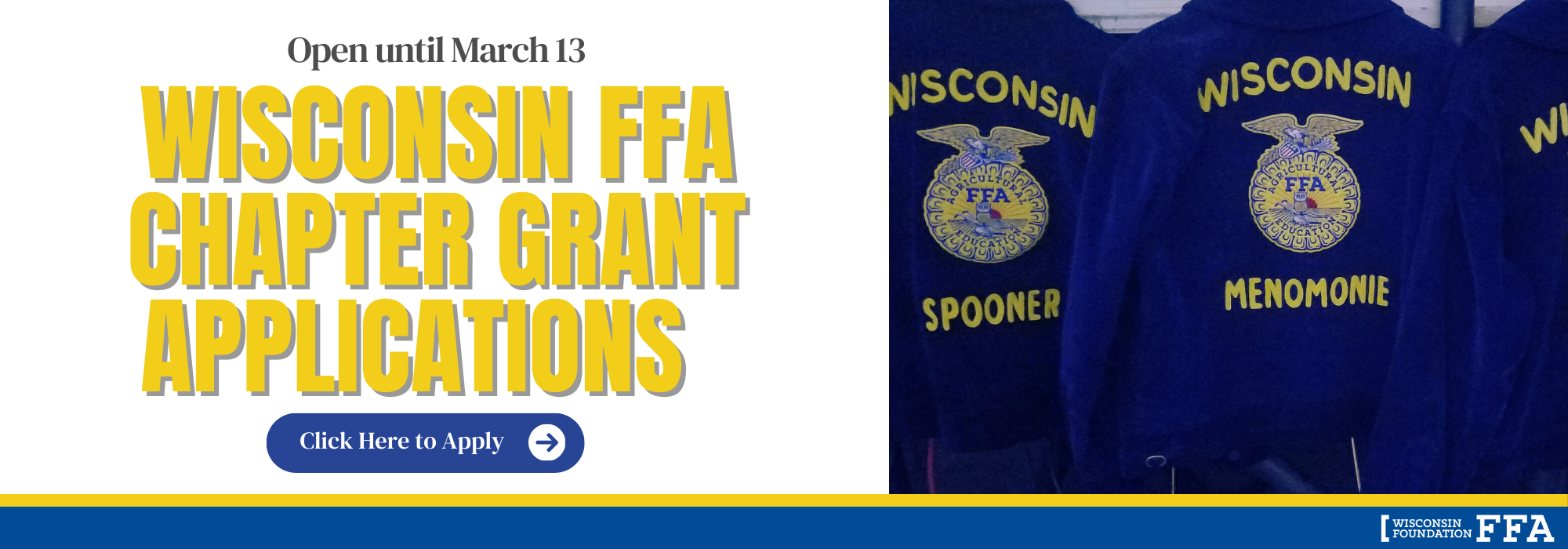 The Wisconsin Association of FFA is recruiting collegiate students to help share the celebration of FFA members leading up to and during the Wisconsin State FFA Convention in Madison, WI. Applications are open until March 8, 2026. Click the link above to learn more.